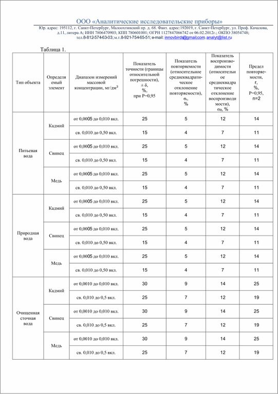 Методики выполнения измерений содержания Cd, Pb, Cu (кадмия, свинца, меди) методом инверсионной вольтамперометрии